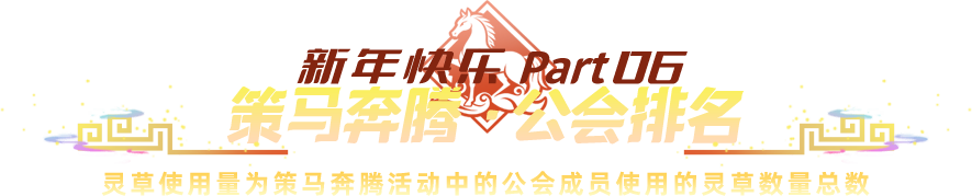 6、策马扬鞭公会排名将会活动结束后进行领取对应说明奖励,公会成员礼包/会长分配礼包/会长奖励,均为分配和发放后立即使用,排行榜少数道具为发放到会长库存。